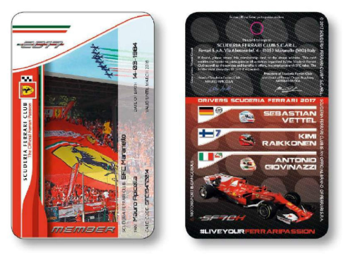 A vezér klubbunk Maranellóban, a jelentkezésed jóváhagyása után a nevedre kiállított kártya mellé, küld (a teljes átfutás a jelentkezéstől a kártya megérkezéséig 45-60 nap) számodra egy kis ajándékcsomagot, amivel szeretnének téged megörvendeztetni és ezzel köszönetet mondani a Ferrari iránti szenvedélyedért.