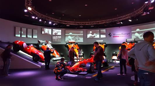 A tárlatlátogatás során nyílik alkalma mindenkinek kipróbálni a méltán elhíresült F1-es Ferrari szimulátorokat (az ára 25 €/fő/7 perc)… Igazi kerék a keréken csaták is ki szoktak alakulni, de azért a kicsúszások és falba ütközések vannak többségben… :) Egy páros menet 50 euróba kerül az időtartama pedig 7 perc körül mozog.